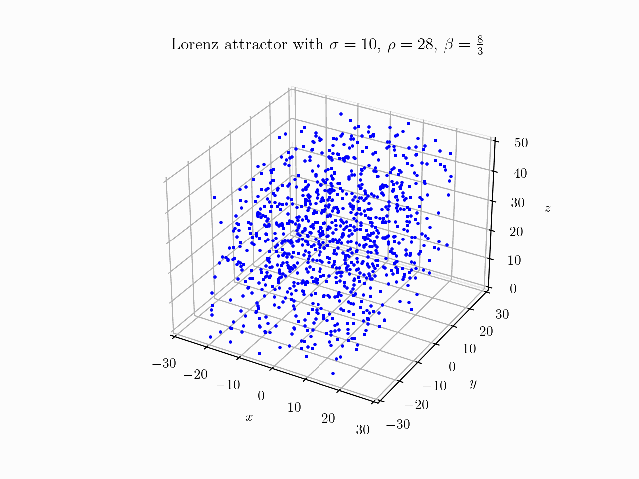 The Lorenz attractor is another attractor and very famous because of its interesting behavior. The dynamical system has three degrees of freedom and consists of the following differential equations: